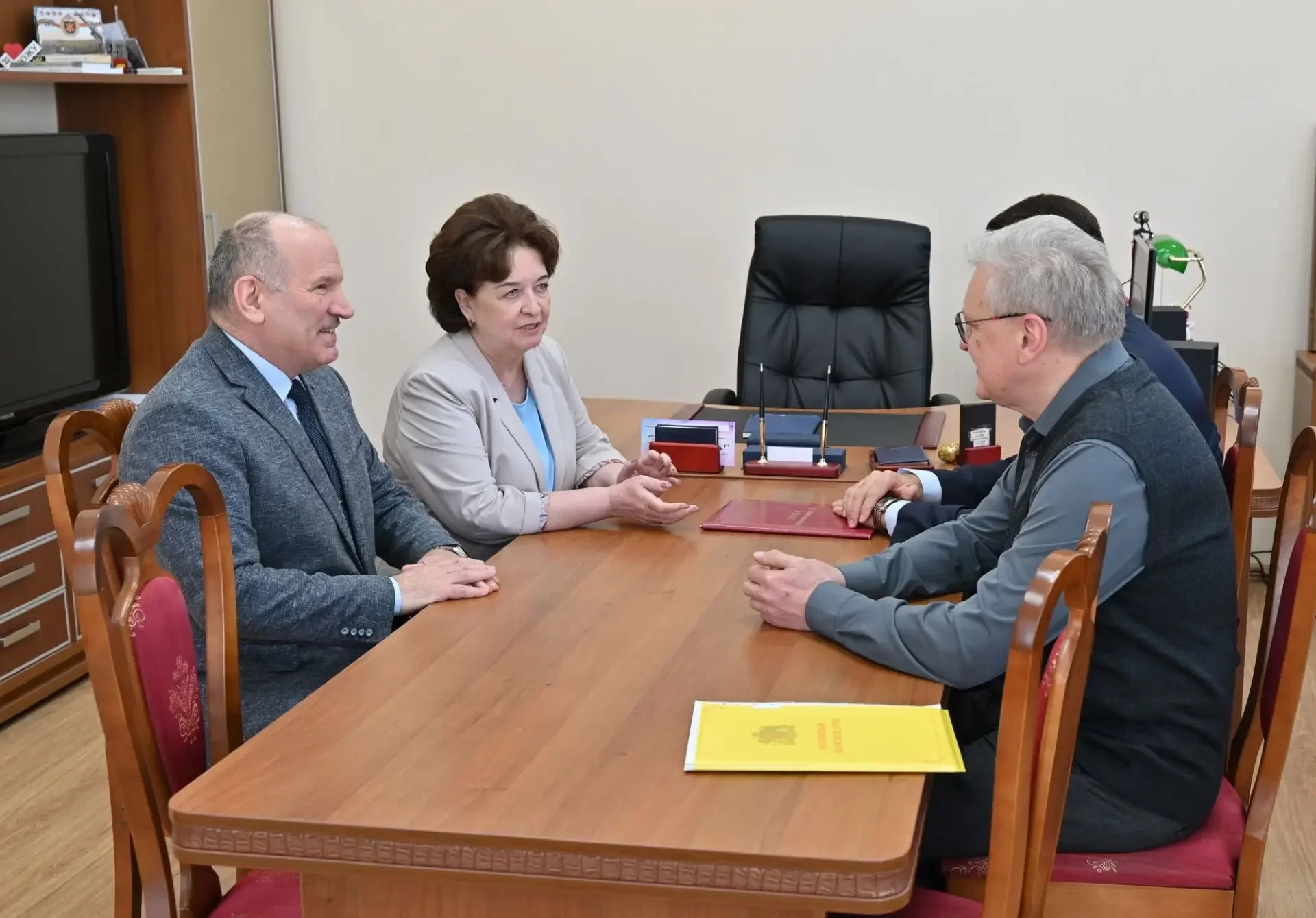 На встрече с главой городского округа Владимиром Оврашко и председателем Шуйской городской Думы Юрием Даниловым обсуждалось совершенствование действующих мер поддержки на региональном и муниципальном уровнях. По словам Владимира Оврашко, в конце 2025 года в округе было принято решение освободить участников СВО и членов их семей от уплаты земельного налога.