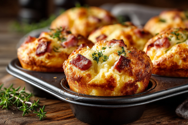 Пшеничная мука — 200 г, яйца — 2 шт., сметана — 150 г, разрыхлитель — 1 ч. л., соль — 0,5 ч. л., сахар — 1 ч. л., вареная ветчина — 150 г, твердый сыр — 100 г, зелёный лук — 3-4 пера, растительное масло — 1 ст. л. для смазывания форм.