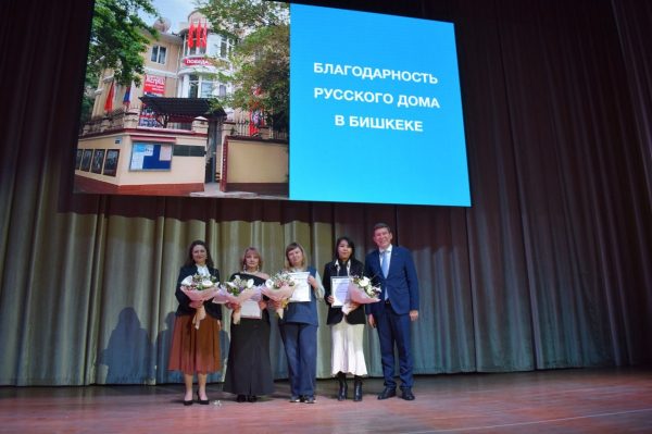 Помимо дипломов Посольства, были вручены благодарности Русского дома в Бишкеке. За вклад в укрепление общественного согласия и развитие образовательных связей награды получили представители ведущих вузов и культурных учреждений страны: Жанетта Чернова (ГДК "Диалог"), Виктория Абдулова и Саадат Шерматова (КНУ им. Ж. Баласагына), Наргиза Эркинбек кызы (КГУ им. И. Арабаева), а также учитель из Баткенской области Анастасия Щепеткова.