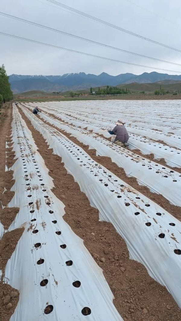 В Токтогульском районе стартовал перспективный аграрный проект — вновь созданный кооператив "Кадикс Шер" приступил к высадке 15 тысяч саженцев клубники элитного сорта "Альбион", завезенных из Калифорнии.
