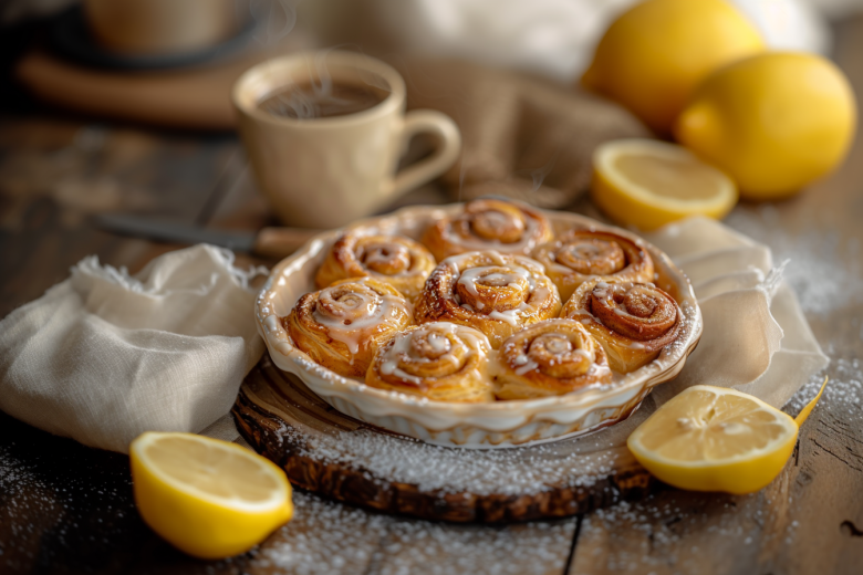 Пока булочки подрумяниваются, смешайте сахарную пудру с лимонным соком до гладкости. Готовые горячие «синнабончики» полейте глазурью — она быстро схватится и добавит лёгкую кислинку. Снаружи — хруст, внутри — мягкость и тёплая сладость. Идеально к чаю и без лишних хлопот!