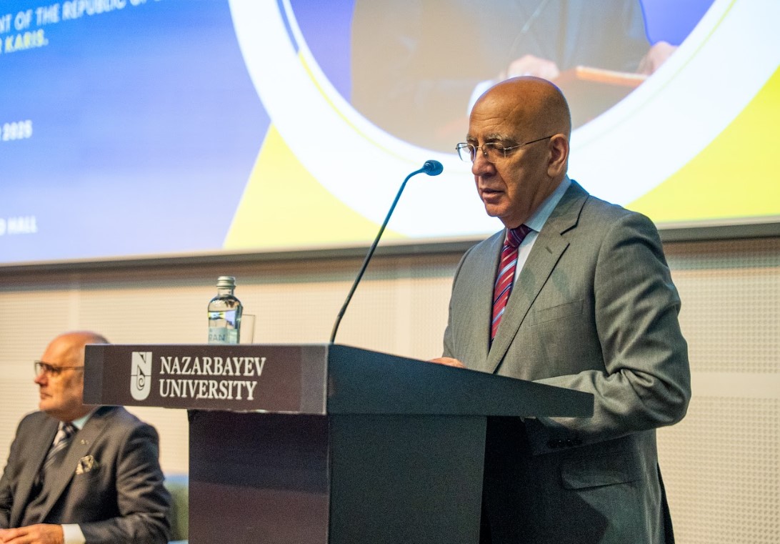 «Я рад находиться в Казахстане и произнести свою первую речь именно здесь, перед студентами NU. Как бывший ректор двух университетов Эстонии, я хорошо понимаю, какое значение имеют знания и их применение на благо народа. Хотя мы находимся далеко друг от друга географически, у казахов и эстонцев много общего. У нас богатая общая история — прямая и косвенная. Мы оба находимся на древних торговых путях, многое пережили и многому научились, и теперь делимся знаниями друг с другом» Профессор Алар Карис