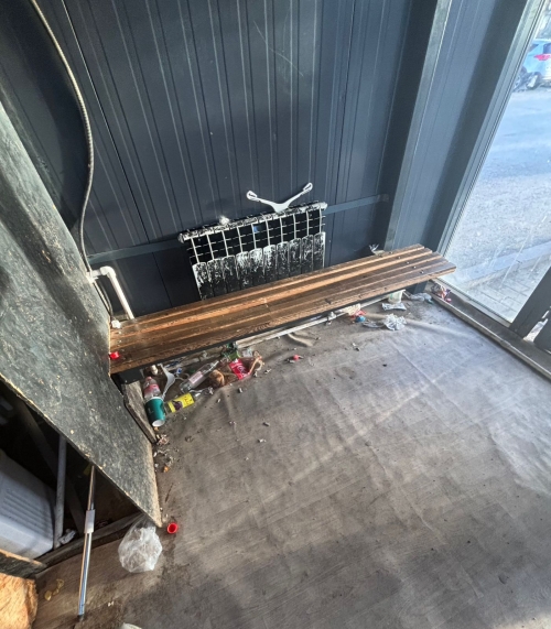 Люди выбрасывают мусор на остановке, двери сломаны. Там установлена камера — почему не применяются меры и не выписывают штрафы нарушителям? Кроме того, до сих пор не включили отопление — в морозы находиться на остановке невозможно. Сама остановка в крайне запущенном состоянии.