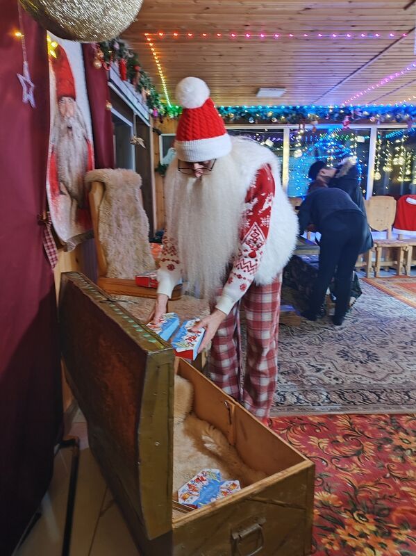 Для этого Нового года самый главный его персонаж прикупил уютные, почти пижамные, штаны в красную клетку, новогодний свитер, красные кроссовки и белую меховую жилетку. В этом наряде и встречает больших и маленьких гостей в своей резиденции, которую устроил на затерянной в снегах даче. Говорит, что очень удачный подобрал наряд, удобный, а то в прошлом году, когда мероприятия шли одно за другим, очень уж хотелось хоть ненадолго снять с головы цилиндр. Одно дело — надевать его на съёмки, и совсем другое — работать с утра до вечера.