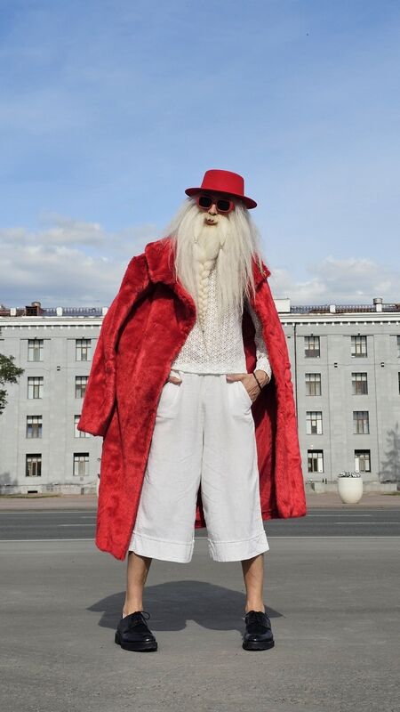 Все вышеперечисленные наряды Артёма Власенко — это базовый минимум, который он то и дело с чем-то комбинирует. Образы у него всегда эксцентричные и всегда разные. Павлодарский дед щеголял по городским улицам и в розовой шубке Тедди, и в зелёной коротенькой курточке на голый торс, и в мерцающем костюме-двойке. Он то ковбой из американских вестернов, то рубаха-парень в кирзачах из заводского посёлка. Неудивительно, что когда-то именно его приглашали на российскую телепередачу “Модный приговор” в качестве обвинителя традиционного одеяния Деда Мороза.
