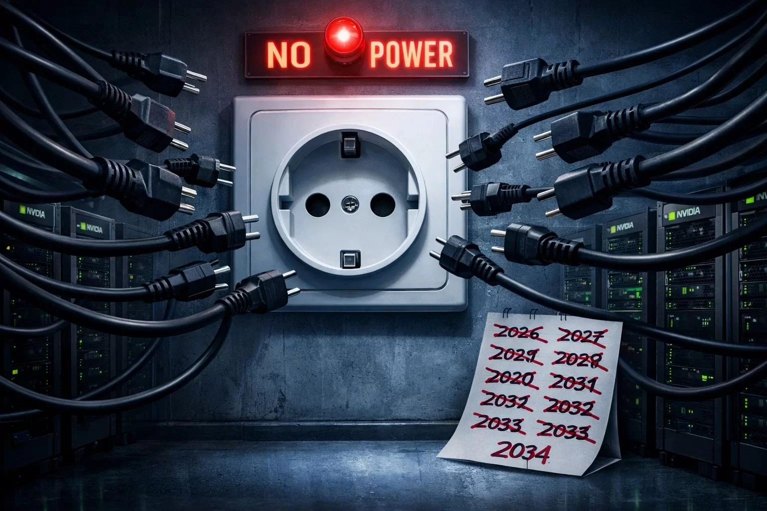По оценкам специалистов, потребление электричества центрами обработки данных к концу года может достигнуть 1050 тераватт-часов — это столько же, сколько потребляют целые страны вроде Японии. А теперь представьте: всё это железо есть, но запустить его невозможно. Потому что для него банально нет розеток с нужной мощностью.