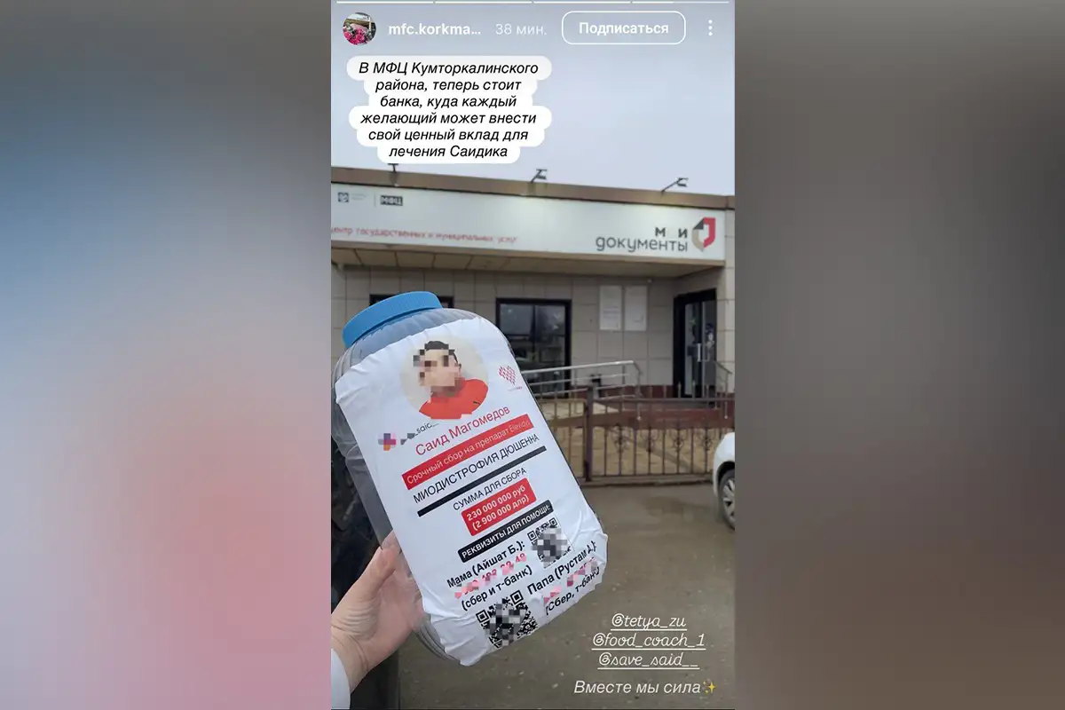 Весь Дагестан спасает маленького Саида. У мальчика миодистрофия Дюшена, и увы, ему не может помочь государственный фонд «Круг добра» — мальчику почти 10, а получить лечение препаратом элевидис от государства можно только до 9 лет и 1 месяца. Для детей более старшего возраста его эффективность и безопасность не доказана. Вот и собирают родители с помощью волонтёров 3 млн долларов для лечения в ОАЭ. Имеют право. Ну, подумаешь, документы старые, да и отчетов по картам родни нет. Некогда людям отвлекаться на глупости, им срочно нужно 3 млн долларов.